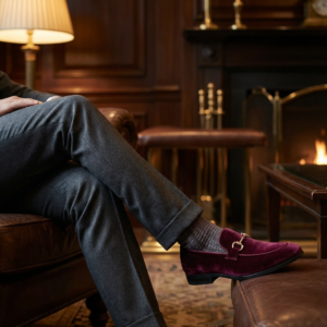 If you’re looking to enhance your wardrobe with footwear that exudes elegance, sophistication, and practicality, the Men’s Velvet Horsebit Loafer is the epitome of modern menswear. With its timeless design and attention to detail, this loafer serves as an essential statement piece for today’s discerning gentleman.