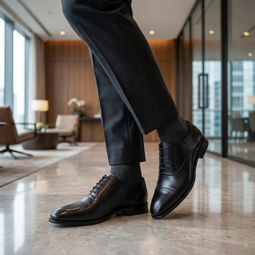 The AS1Y3081 black lace-up dress shoe is the epitome of refined elegance, meticulously crafted to complement the contemporary gentleman. Featuring a smooth synthetic leather (PU) upper, the shoe boasts a sleek, glossy finish that adds a polished touch to its classic Oxford design. Whether you’re heading to a formal event, attending a business meeting, or dressing for the office, this shoe brings unmatched sophistication to your attire.