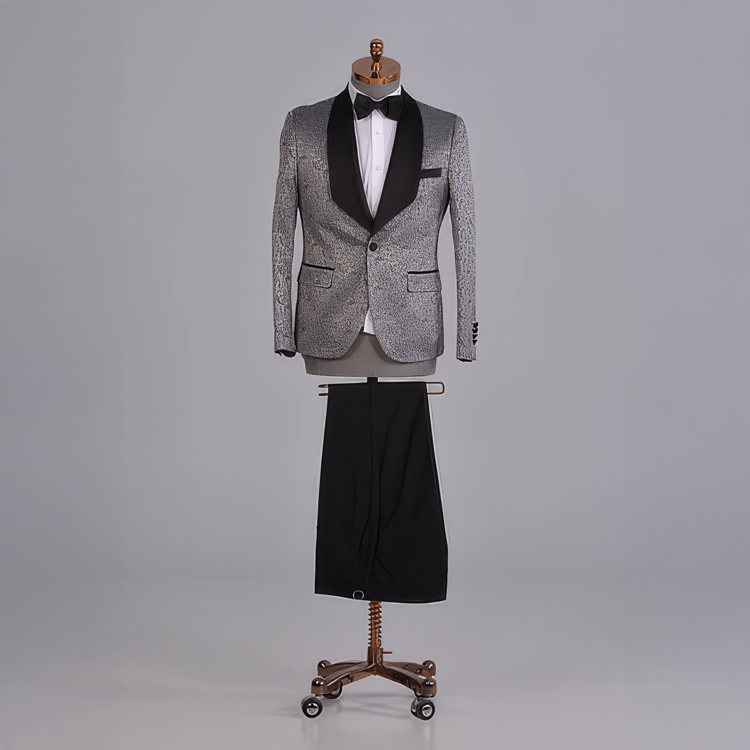 Premium Textured Fabric: A refined finish that enhances the overall elegance of the tuxedo.